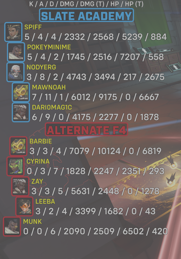 Match: Week 3 SLATE OW ACADEMY vs Alternate F4