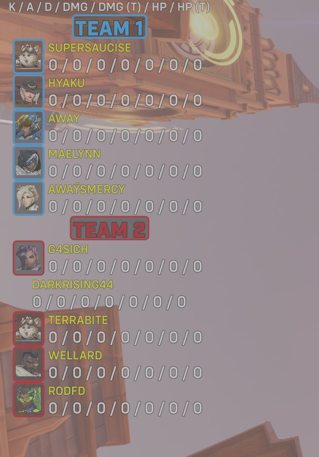 10 entries| Team | Player | Kills | Assists | Deaths | Damage | Damage (Taken) | Healing | Healing (Taken) |