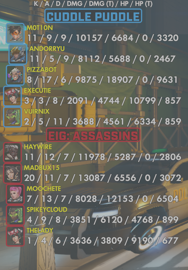 Week 7: Cuddle Puddle vs EIG: Assassins